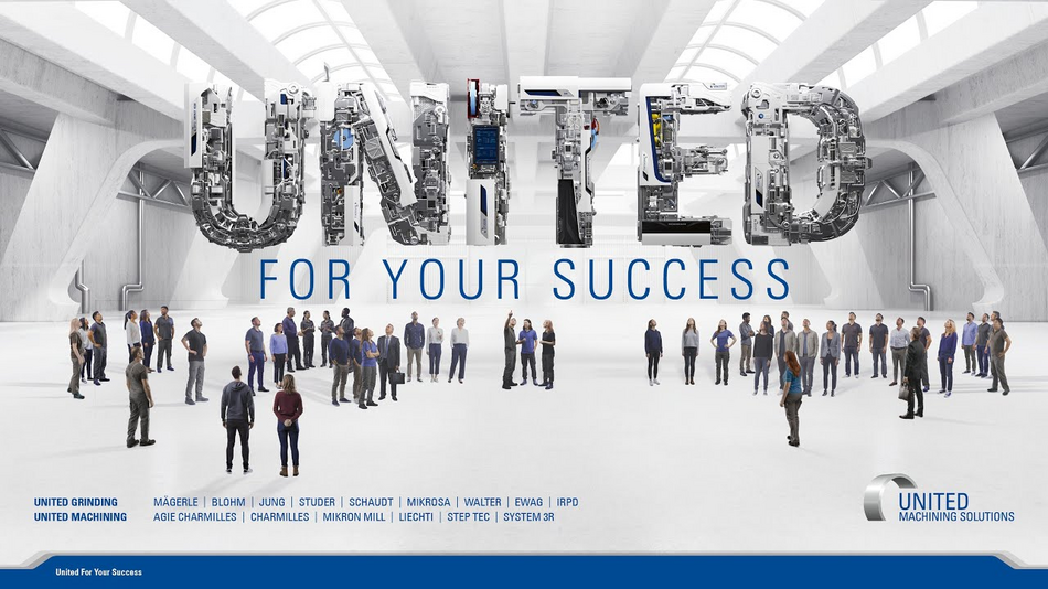 Mit den Marken MÄGERLE, BLOHM, JUNG, STUDER, SCHAUDT, MIKROSA, WALTER, EWAG und IRPD, sowie den Kompetenzzentren in Amerika und Asien, bietet UNITED GRINDING ein breites Applikationswissen, ein grosses Produktportfolio und Dienstleistungssortiment für die Fertigung hochpräziser Bauteile.