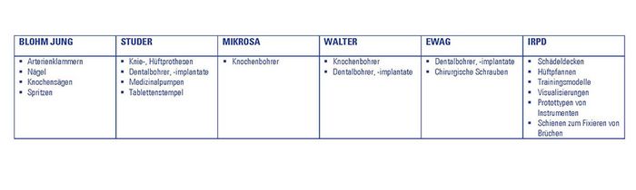 Beispiele von medizinischen Anwendungen in der UNITED GRINDING Group