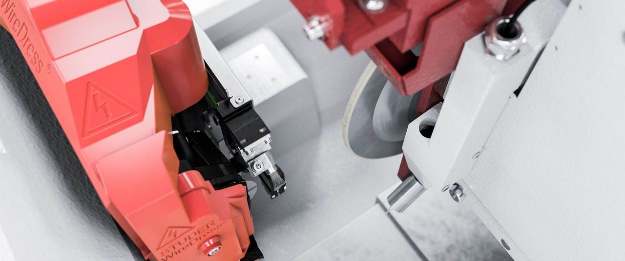 STUDER WireDress®, with its capability to dress the toughest metal-bonded grinding wheels, opens up new possibilities for machining high performance alloys, ceramics, carbide and hardened steel. Profiling and sharpening is performed automatically using a method similar to wire erosion (EDM), which does not require mechanical contact between wire, grain and bond, thus protecting the grain.
