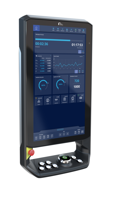 C.O.R.E. from the UNITED GRINDING Group brings to life a new machine interaction concept based on a modern hardware and software architecture. It standardizes operation of all machine tools from the UNITED GRINDING Group, with a new 24-inch multi-touch C.O.R.E. panel offering intuitive controls similar to a smartphone and personalized customization options. The clean design of the C.O.R.E. panel features only a few buttons, ensuring clean visuals. The virtual function keys are also only displayed when needed, further reducing complexity and eliminating potential sources of error. The role-specific interface, with the option of limiting the display to relevant information for the user role, also promotes simplification. In this way, C.O.R.E. improves the working experience both for the machine's operators as well as set-up and maintenance personnel. Another new feature is the integrated front camera, which enables quick and easy support also via video calls directly from the panel.