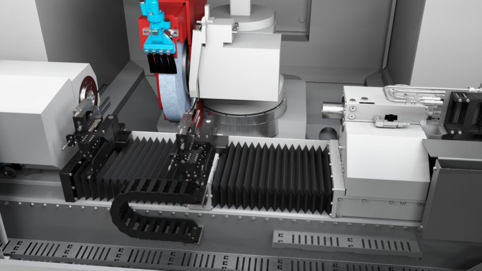 On the S31 universal cylindrical grinding machine for small to large workpieces, STUDER demonstrated an innovative axis system that sets new standards in automated precision cylindrical grinding. The long W-axis enables automatic adjustment of the tailstock position to different workpiece lengths, while the active R-axis with an in-process measuring system can scan complex geometries on the workpiece. A special feature of the system is the direct measurement of the clamping force. This ensures precise, reproducible clamping conditions for workpieces. The clamping force is also visible to the machine operator on the control screen.