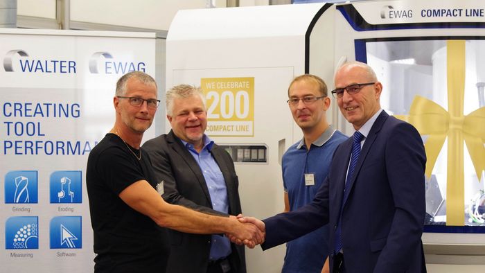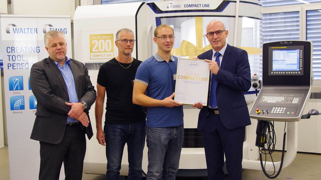 The COMPACT LINE of tool grinders from the Switzerland's Ewag AG have proved a powerful daily complement for tool grinding operators working in the finishing and re-grinding of high-quality indexable inserts for drilling and milling tools. The sales numbers tell the story: the 200th machine from the series left the factory after a small ceremony, headed for Swedish tool manufacturer SECO TOOLS AB.
