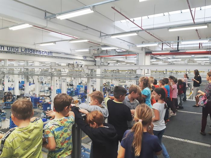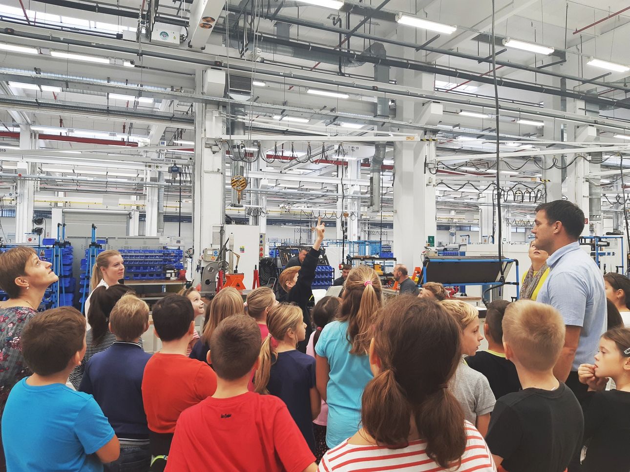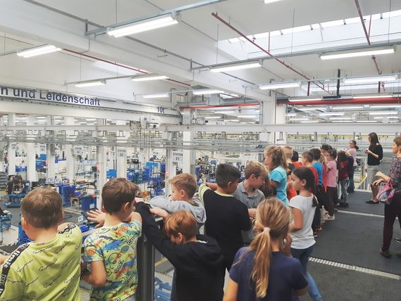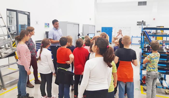 The children had interesting questions, such as "How many cranes do we have in production? How are such big machines transported? How much does a machine cost and of course how much does an employee make in this company?" Cilog had the greatest success with the children. After a detailed conversation, she found out that the children enjoyed the tour but would rather have explored the business by themselves.