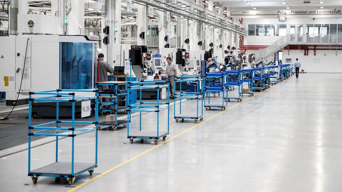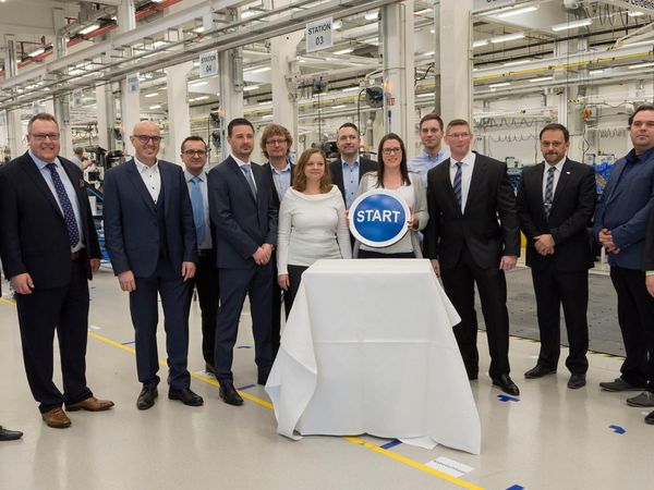 Jürgen Schock, CEO of Walter Maschinenbau GmbH, welcomed the group of about forty invited guests followed by a short speech from project manager Markus Schulze about the flow assembly line project, before kicking off the official opening ceremony. Together, the entire project team pressed a start button to symbolize the official launch of the flow assembly line.