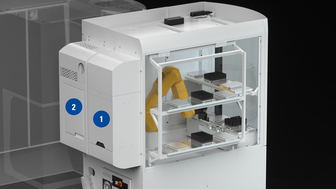 The use of new modules for cleaning and laser marking of tools in the robot loader further increases flexibility during manufacture and final inspection. The user saves valuable time by automatically loading the measuring machine with the robot loader and concurrently cleaning and laser marking the tools outside of the measuring area.