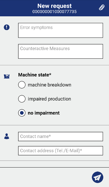 Les fonctions permettent de communiquer par texte, vidéo et vocalement. Il comprend en outre un tableau blanc pour l’échange d’informations techniques sur la machine concernée. Nos techniciens de Customer Care peuvent insérer directement des conseils dans les photos de l’opérateur de la machine et lui apporter une aide pour les étapes de travail par des moyens graphiques.