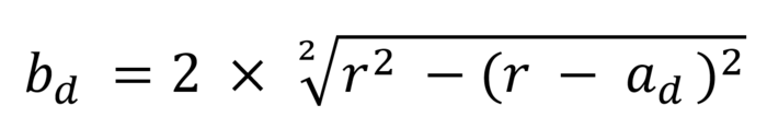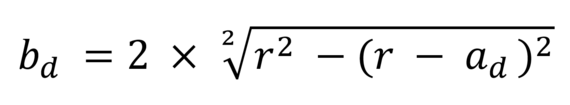 La largeur active bd est une fonction du rayon r sur le pourtour de la molette de forme et de profondeur d’avance ad.