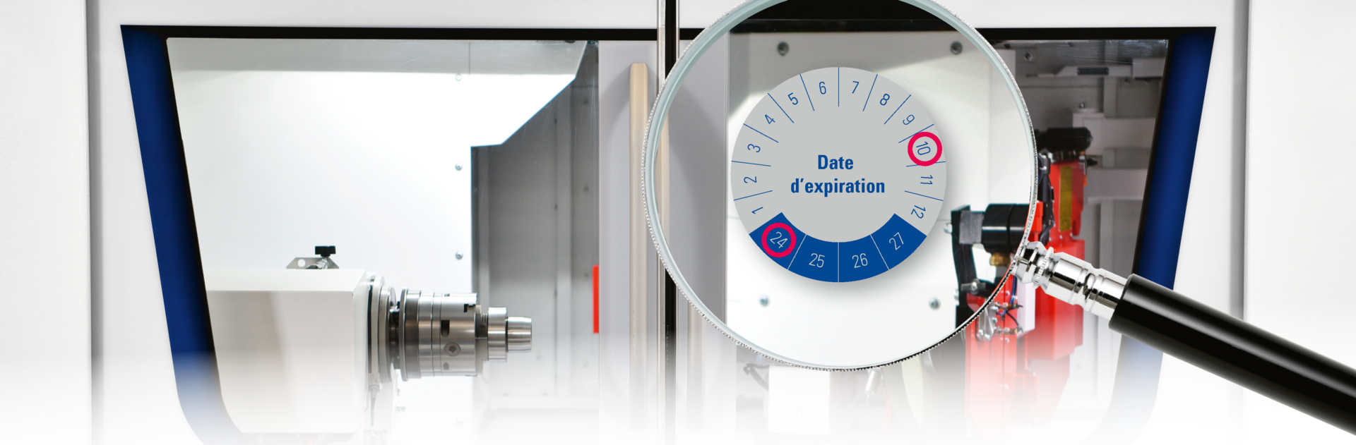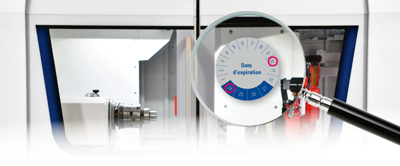 C’est pourquoi la norme de sécurité européenne ISO 16 089 recommande de remplacer les vitres en polycarbonate tous les deux ans. En cas de dépassement de la date d’expiration indiquée sur l’étiquette apposée sur la machine, la vitre doit être remplacée dans les plus brefs délais. Indépendamment de la date de péremption, en cas de fissures, rayures ou de pénétration de liquide de coupe visibles, il convient également de remplacer immédiatement la vitre, ces dernières pouvant entraîner rapidement des dommages, peut-être même déjà existants.