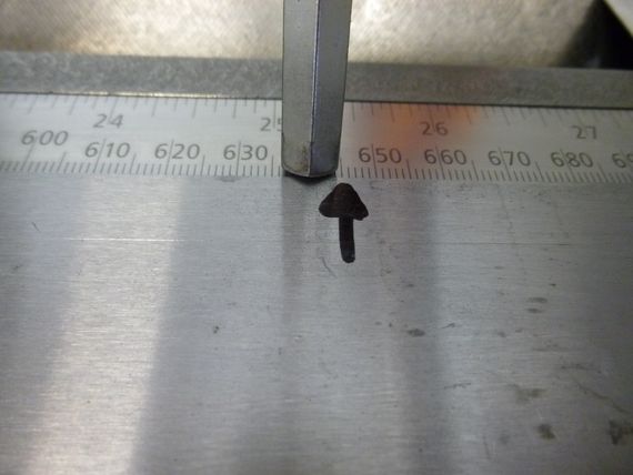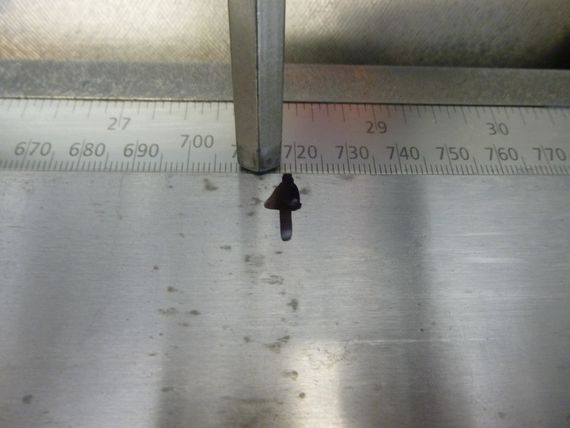 Cerchiamo ora la verticale dalla posizione del tastatore alla scala della tavola. Nel nostro esempio, utilizziamo a questo scopo un utensile lungo. È possibile utilizzare anche una squadra grande o un filo a piombo.