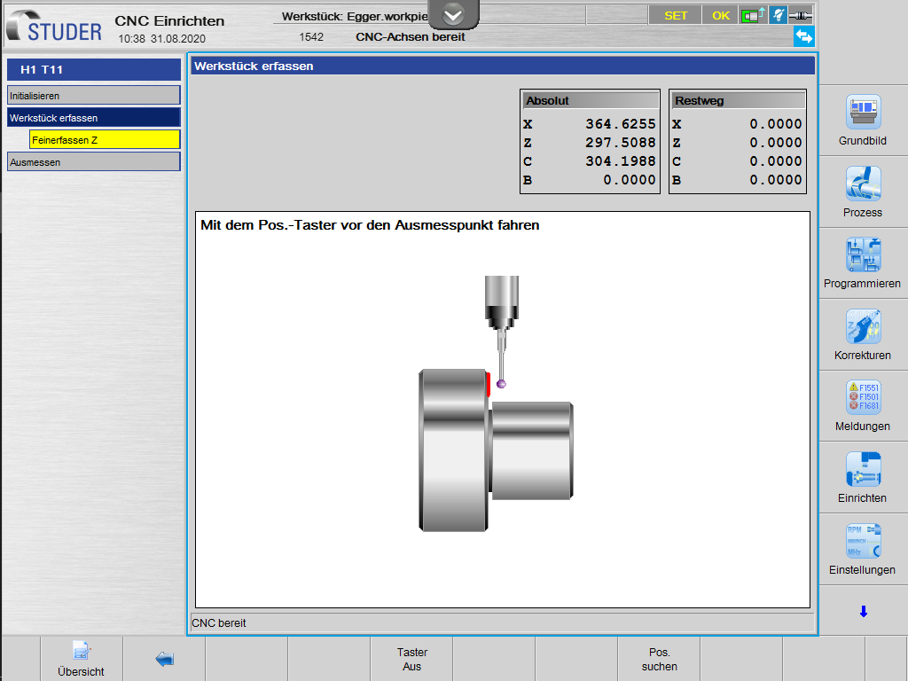 Avviando il nuovo programma, la macchina si sposta con il tastatore nella posizione corrispondente e imposta il nuovo punto zero.