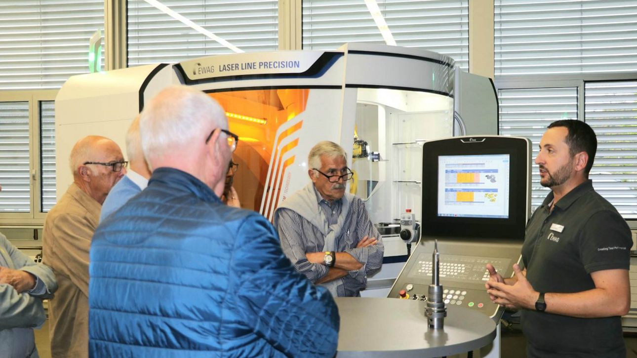 Dopo una breve presentazione nella sala demo, hanno presentato le macchine EWAG e l'azienda in tre diverse postazioni: i collaboratori hanno spiegato ai visitatori il funzionamento della rettificatrice universale WS 11 e si sono soffermati su una macchina laser su cui sono state realizzate delle micropunte con un diametro inferiore a 0,5 millimetri, per poi passare al montaggio. Due visitatori si sono emozionati quando hanno visto la WS 11. Avevano lavorato su questa macchina 40 anni fa e sono rimasti sorpresi e felici di vederla ancora utilizzata per la produzione, sebbene in una versione molto più moderna rispetto a un tempo.
