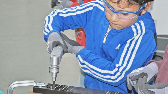 次のタスクに進む前、適切な作業着に着替えました。 安全めがね、手袋、安全靴。 次は、組み立て前、テスト、アプリケーション部です。 そこで、子どもたちは、機械工学において精度とその重要性を学びました。 電気モーターを組み立て、電流を流し、動いたのをみて、感動していました。 電流がコイルを流れている場合に発生します。